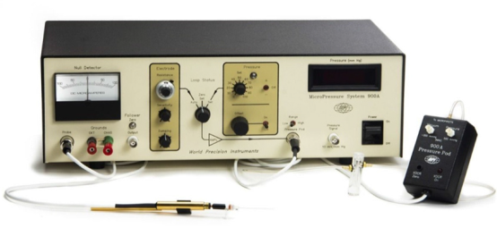 WPI公司生产的SYS-900A微压测量系统最早设计用于测量微小空间范围内(从几微升到几百微升)的液体压强变化,用于小动物肾小球滤过压小于1毫米汞柱的微小变化的测量,测量精确度可以到小数点后两位,而且重复性极佳。